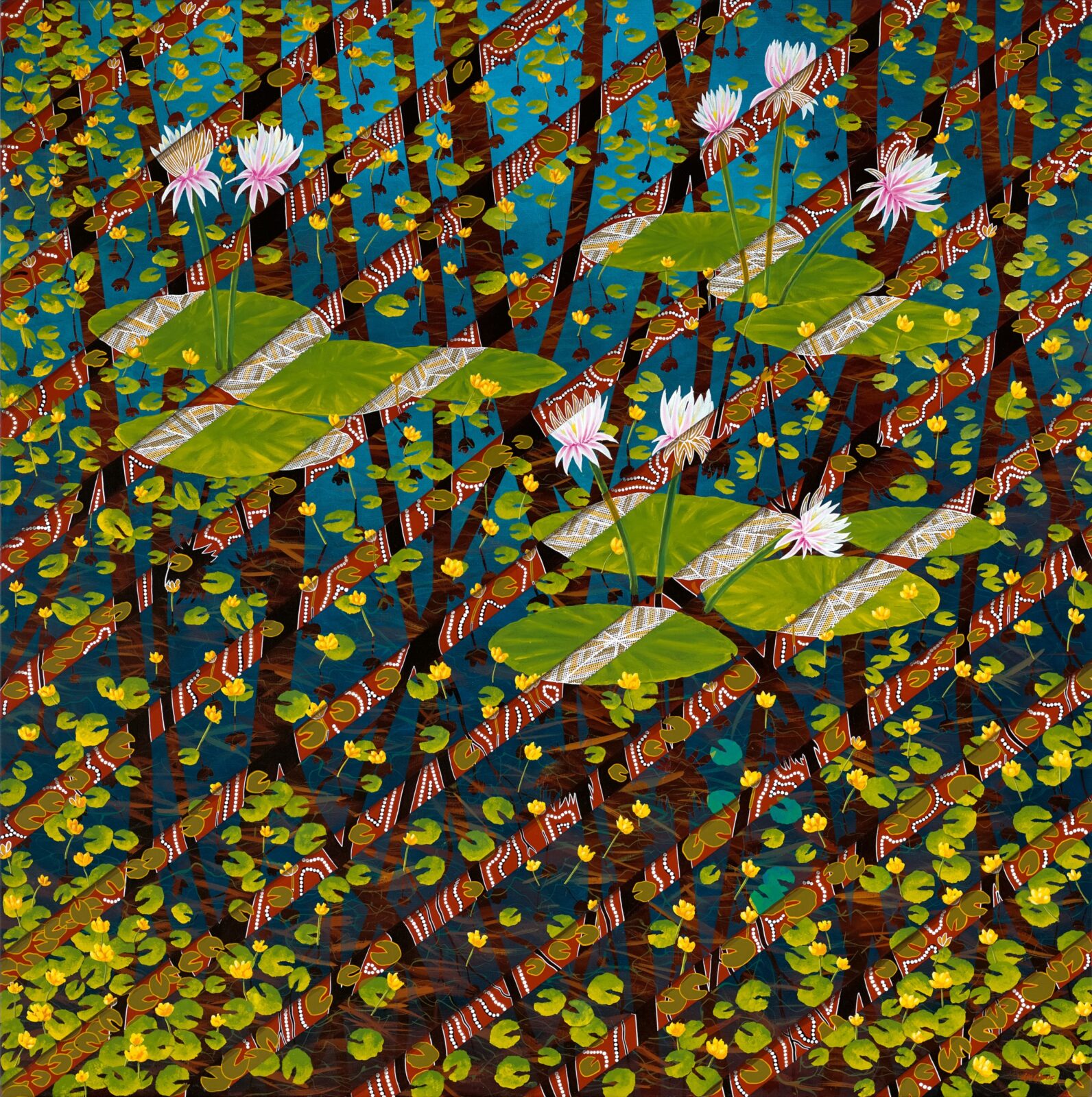 Above: Lin Onus | Yellow Lillies 1993 | Sold for AUD $552,273 (inc. BP) at Deutscher and Hackett